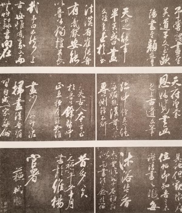 予尝谓画至吴道子,文至欧阳,书至颜鲁公,天下之能事毕矣。……向在天府,曾蒙恩赐览书画,见上古遗文笔迹,中锋直下,毫无媚态。汉晋以来专以侧锋在妍,大失古人本旨。至于鲁公,锋势中正,直抵苍颉,如锥画沙,如印印泥,扫尽汉晋媚习,自成一家。(苏轼:《临争座位帖》跋,1901年拓本,芝加哥菲尔德自然历史博物馆)
