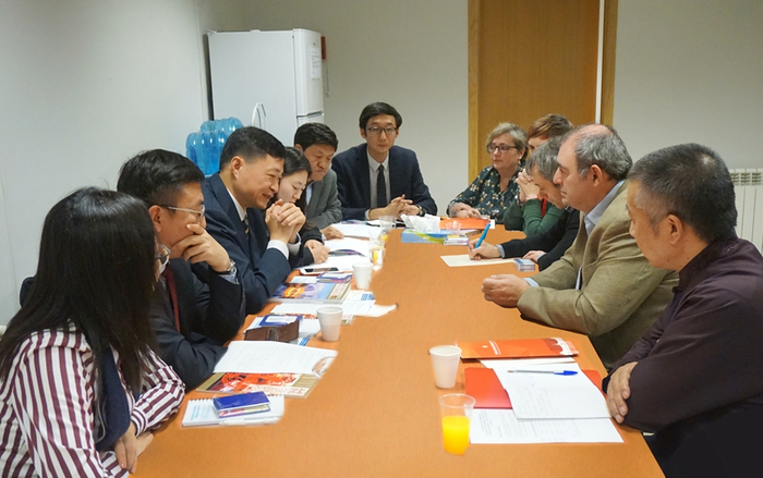12月13日,访问瓦伦西亚大学孔子学院期间,代表团与瓦伦西亚大学孔子学院外方院长安文龙(Vicente Andreu)、孔子学院中方院长张代生等就孔子学院的建设与发展、承办孔子学院总部/国家汉办的孔子学院多语种期刊等问题进行了交流。随后,代表团与瓦伦西亚大学语文学、翻译与传媒学院院长安帕罗•瑞克(Amparo Ricós)、科研副院长赛里希奥•玛鲁安达(Sergio Maruenda)、国际事务副院长安娜 •罗萨•卡里洛(Ana Rosa Calero)等,就两校的外语语言教育、教育资源共享、学生联合培养和科研合作等进行了交流,双方将共同推进两校建立合作伙伴关系,进而促进相关学科务实合作。
