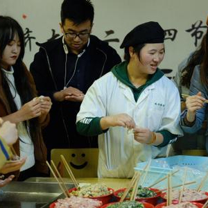 150名同济学子聆听传统节气讲座、同包饺子、品饺子。 周游 摄