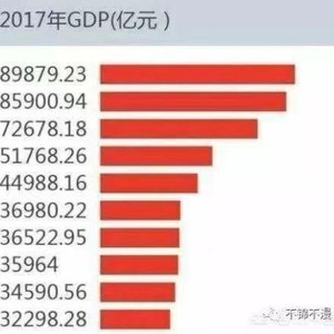 首先我们看看2017年全国GDP排名前十的省份,如下图。由此可见,2017年我国GDP排名前十的省份分别是广东、江苏、山东、浙江、河南、四川、湖北、河北、湖南和福建。