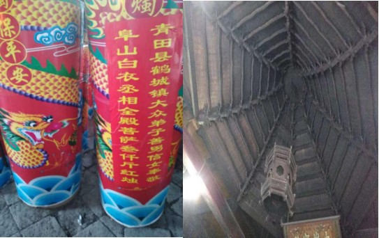 禅寺“千斤烛”(左图),禅寺具有周易八卦元素的大雄宝殿屋顶(右图)本文图片除特殊标注外均为作者拍摄
