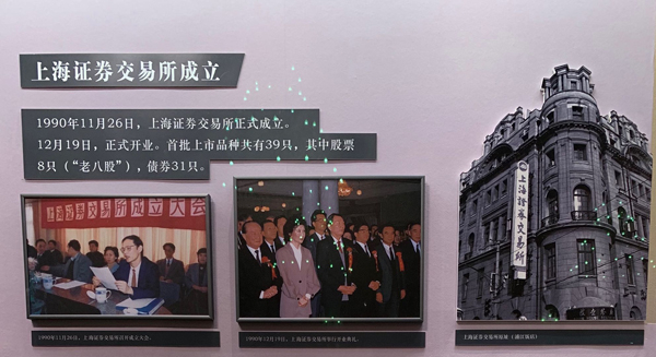 陈列展览分两部分,其一是中国资本市场改革开放历程展,位于一楼大堂和孔雀厅。