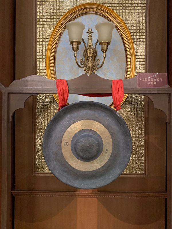 “找到交易大厅后,要找一个开市的标志,他们说我们中国就用一面铜锣吧,终于在城隍庙市场找到了这面铜锣,当时花了600多元,还是挺贵的。”中国证券博物馆讲解员说,1990年12月19日,上交所开张的第一记开市铜锣,就是在浦江饭店敲响。