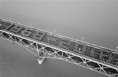 24日,南京市民代表在修葺一新的南京长江大桥桥面拼出了“1968-2018”的字样,向南京长江大桥的建设者、守卫者致敬,为五十岁的南京长江大桥庆生。