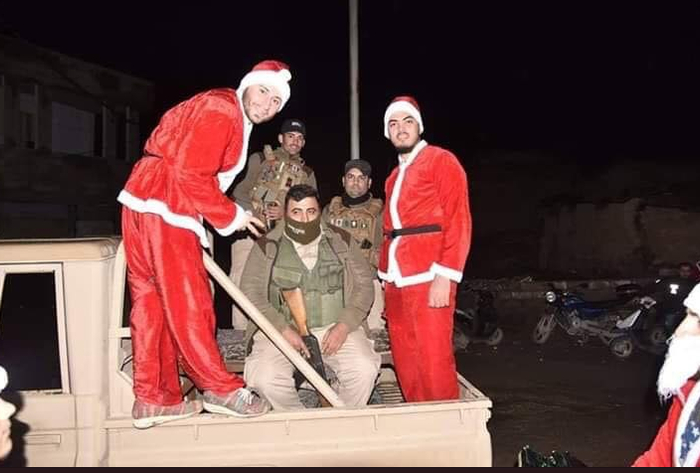 叙利亚政府支持者也做出了反击,他们在社交媒体上称,圣诞老人确实加入了叙利亚军队,他们坐着皮卡,与政府军一起前往哈金(IS最后一个据点)暴揍恐怖分子。