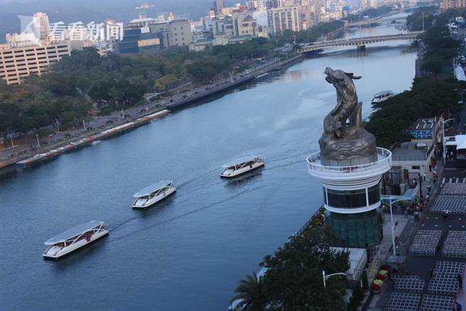 高雄市长韩国瑜及夫人李佳芬乘坐爱河“爱之船”到达就职典礼现场 截图来自联合新闻网