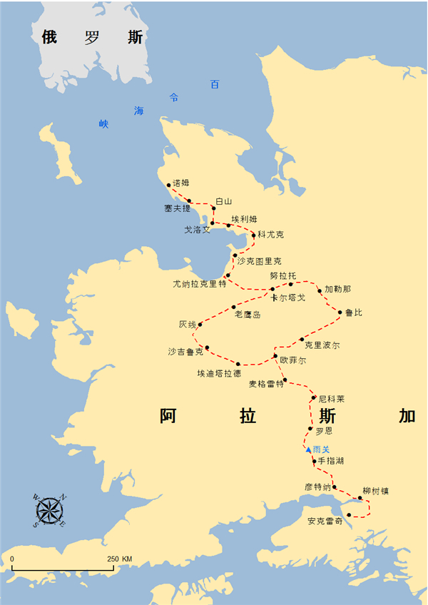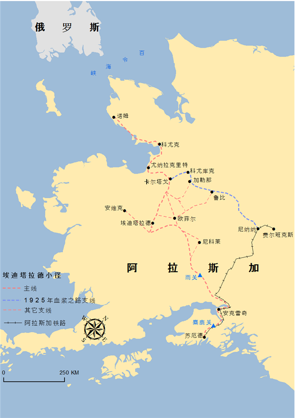 埃迪塔拉德小径主线暨狗拉雪橇赛事路线示意图