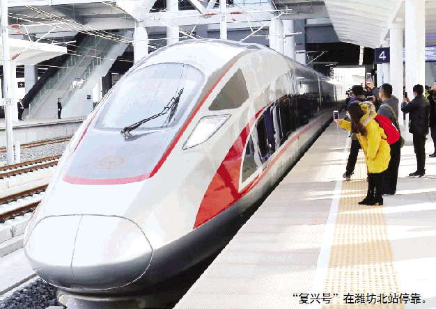 12月26日,激情高铁开通,记者乘坐从济南东站首发经潍坊北站终到青岛北站的G9218次列车,对“复兴号”进行了全程体验。“复兴号”最高开出了310公里的时速,运行平稳,车厢内温水洗手、防烫茶炉、免费Wifi等设施十分人性化,提供的餐品多达上百种。记者还探访了驾驶舱,了解到舱内的高科技。同日,青盐高铁的开通也意味着从潍坊到日照终于有了高铁列车。