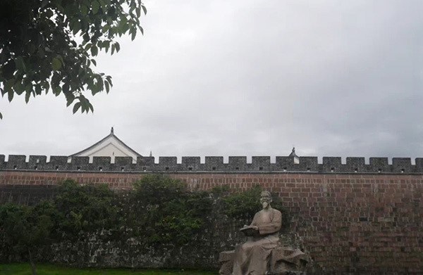 城墙外的黄宾虹雕像。钱尼樟 图