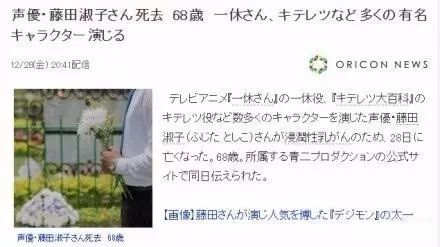 关注 | 童年远去!“一休”配音演员藤田淑子去世 享年68岁