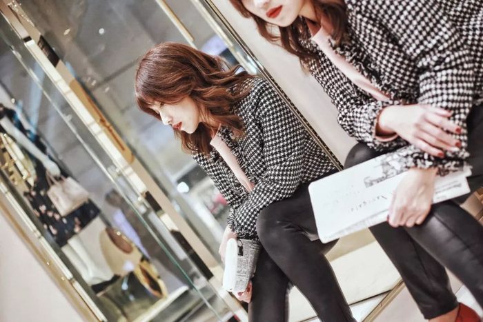 一件黑色毛衣与经典的黑色燕子包呼应,加上羽绒服上印有logo的系带点缀,真是一组帅气又不失可爱的搭配~