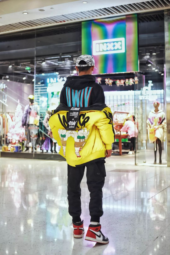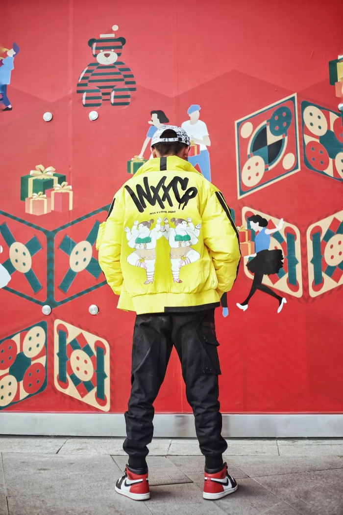 首先就是inxx今年推出的工装风格外套,采用亮眼的大黄色,搭配背面夸张的中国风涂鸦,简直不要太帅了!