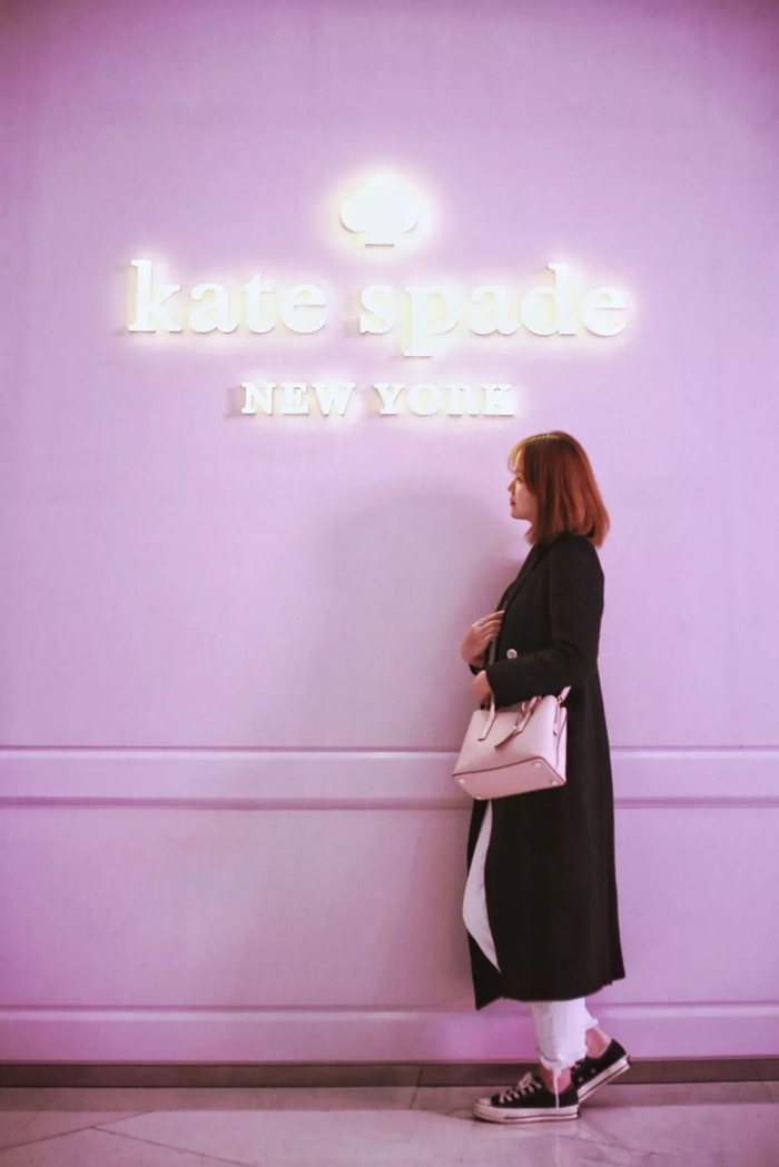 kate spade的这款包包,从粉色到黑色共有4中颜色,整体造型偏沉稳,但搭配起冬季长款的衣服却格外的合适。(ps:kate spade恒隆店门口的粉色墙拍照超美的哟~)