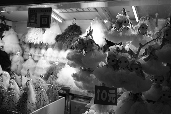 这些排着队和被吊起来的人形玩偶一度让我感到惊悚。我决定等待片刻,看看它们的顾客是谁。南音 摄