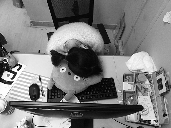 这是我以前上班的办公室,坐在我对面的姑娘午睡了片刻,我正要坐下来的时候,发现靠枕上有一双眼睛在望着我。有一天我翻看到这张照片的时候,突然决定为它写点什么。这个专栏中所有文字都是从这里开始的。南音 摄