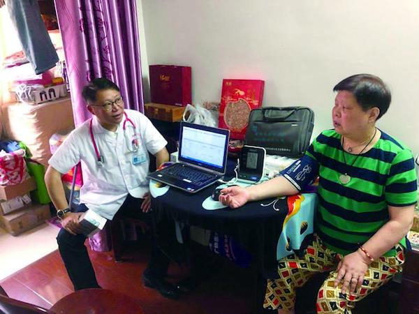 图说:家庭医生上门为病人量血压 打浦桥街道社区卫生服务中心供图