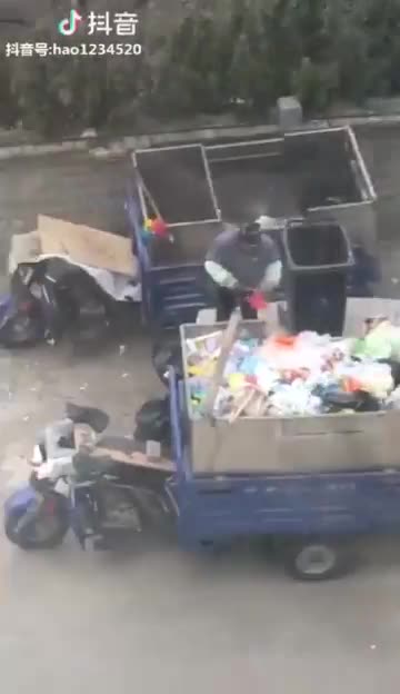 视频-清洁工从垃圾桶中发现国旗 单独拾起温柔整理