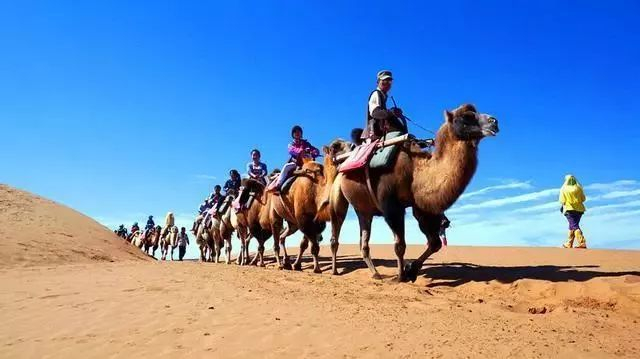 骑着骆驼欣赏一望无际的沙漠,感受大漠的辽阔,体验一下王维的“大漠孤烟直,长河落日圆”的情景。