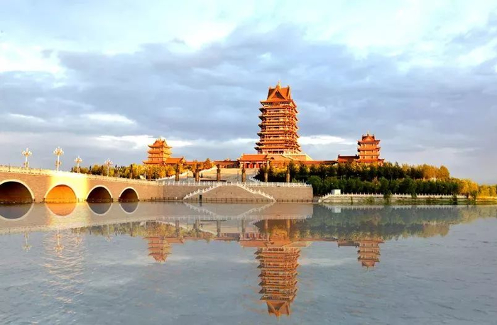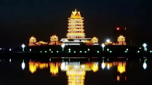 金色夕阳染红了吴忠上空整个天际,也染红了黄河楼被一片金色包裹着,每当夜幕降临,黄河楼的灯光笼罩了整个湖面,如此美景吸引无数游客流连忘返。