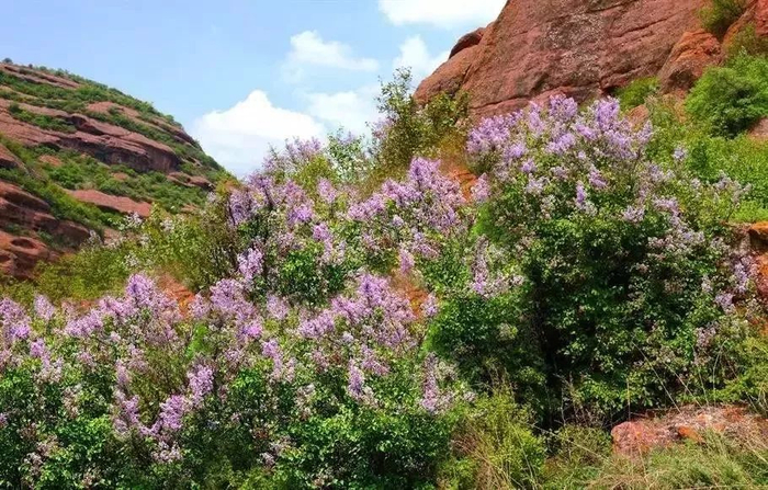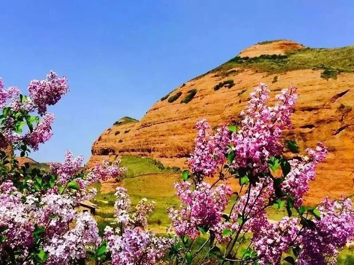 在这里,不仅可以在漫山遍野的丁香花海里呼吸浪漫山花的气息,还可以欣赏到雄奇秀美的丹霞胜景。