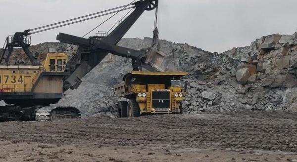 矿区正在用电铲和卡车进行作业,右边的重型卡车宽4米,高6米 澎湃新闻记者 徐路易 摄