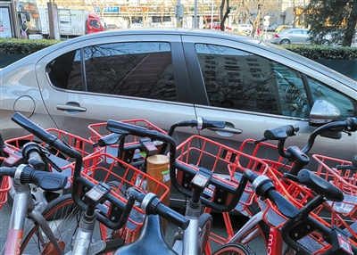 昨日,长椿街地铁站附近,共享单车挡住计时装置,导致无法正常计时收费。