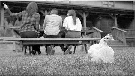 当人们在庭院吃着来自伊恩细胞的烤鸡肉时,