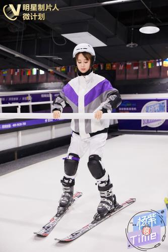 杨紫探讨健身减肥话题 挑战高难度滑雪