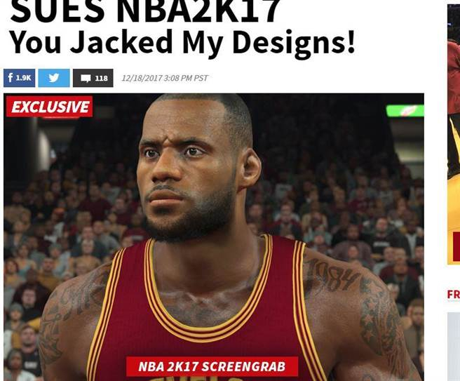 一家名为Solid Oak的版权代理商起诉Take-Two Interactive,原因是在NBA2K游戏中,体育人物身上的文身图案并未获得艺术家的版权许可,其中就包括詹姆斯身上家乡区号330的文身。