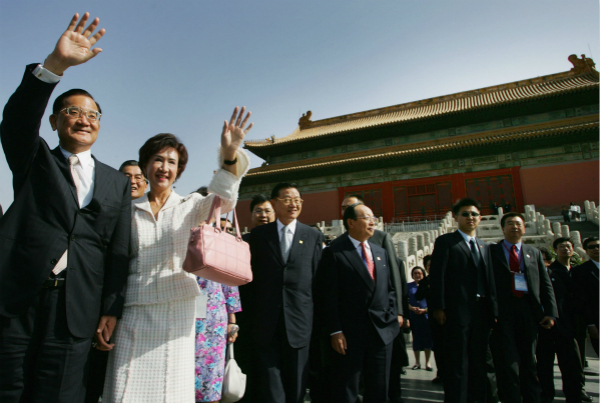 图说:2005年4月28日,中国国民党主席连战到达北京随后参观故宫。