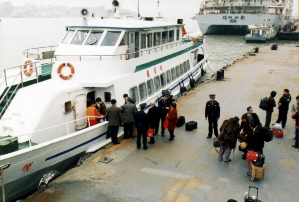 图说:2001年2月6日,第一个从大陆直航金门的探亲团从厦门起航。