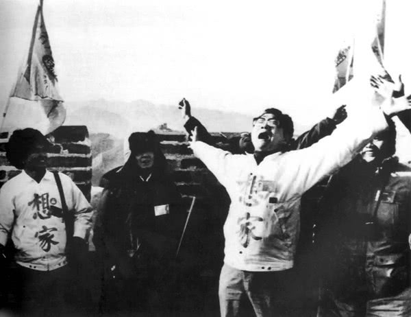 图说:1988年1月20日,首个“台湾返乡探亲团”登上了长城。