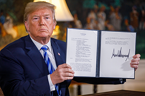 特朗普宣布美国将退出伊核协议。新华社发(沈霆摄)
