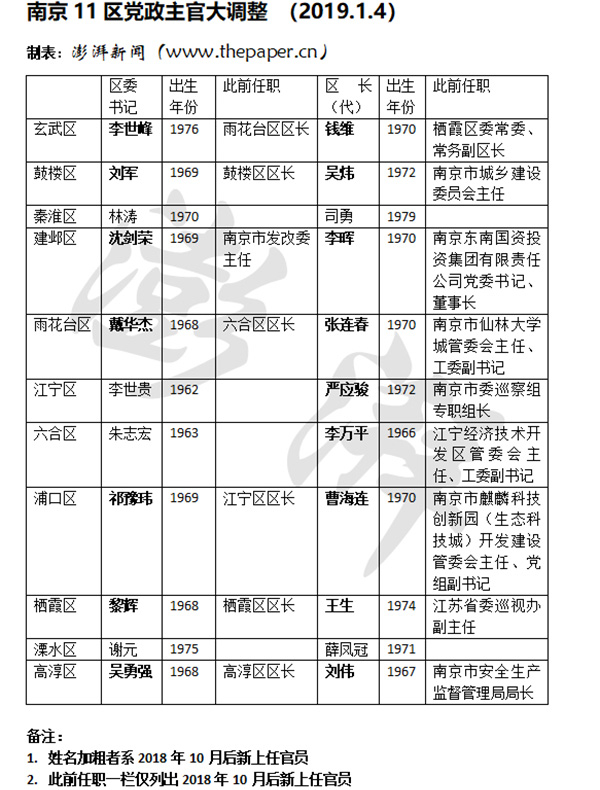 赶在各行政区的区委全会、区“两会”召开之前,南京多个区的党政主要领导已调整到位。