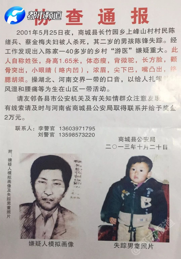 2001年5月26日下午,一桩命案震惊了整个商城县:陈氏夫妇在家中被杀害,他们一岁多的男婴被抢走失踪!这家人的天塌了……