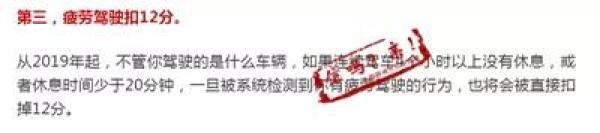 网帖称,从2019年起,不管你驾驶的是什么车辆,如果连续驾车4个小时以上没有休息,或者休息时间少于20分钟,一旦被系统检测到疲劳驾驶的行为,将被直接扣掉12分。