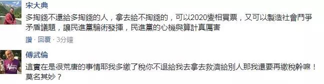 一名黄姓单亲妈妈就抱怨,自己要扶养2个小孩,还租房子过生活,每天超时工作赚钱,去年缴了7万多元的税,结果自己申请不到补助就算了,如今竟然还要把多出来的税收拿去给别人,“这是哪门子烂逻辑啊!”;还有网友炮轰这根本是“史上最大贿选!”