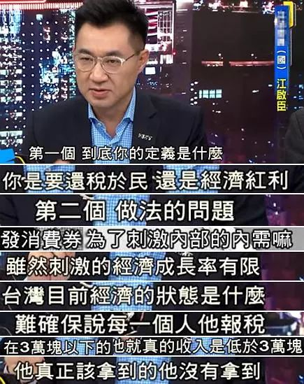 国民党“立委”江启臣也质疑,并不是每个人都会报税,所以此举其实可能会让真正该拿钱的人拿不到。