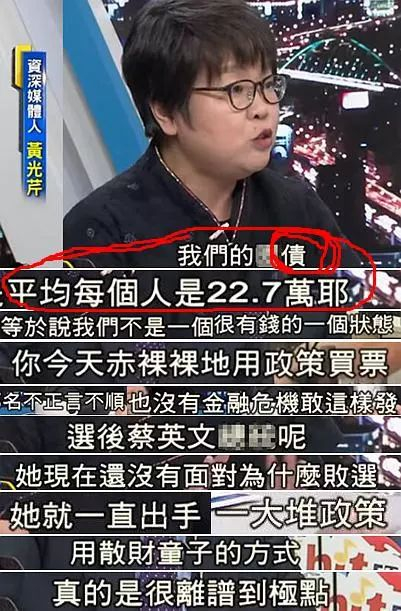 黄光芹更为此痛批蔡英文是“赤裸裸的政策买票”,直言她这种散财童子的方式,真是离谱到极点!