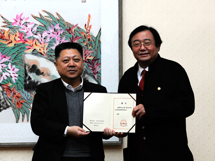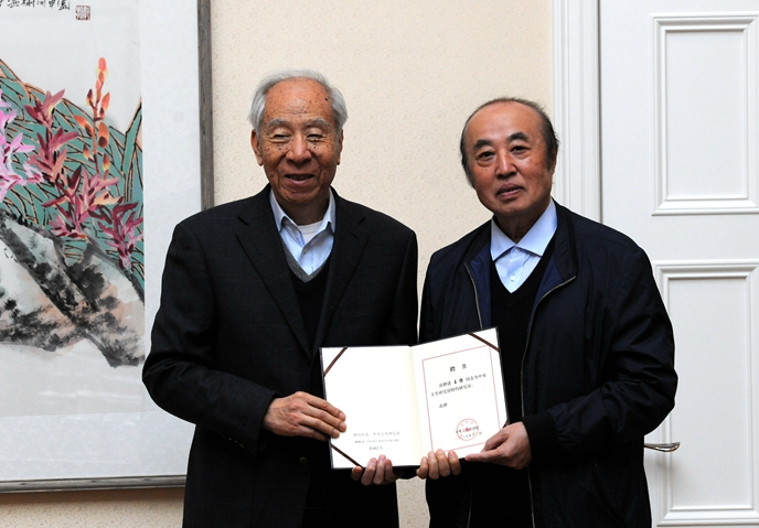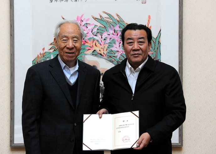袁行霈向王镛颁发中央文史研究馆特约研究员聘书