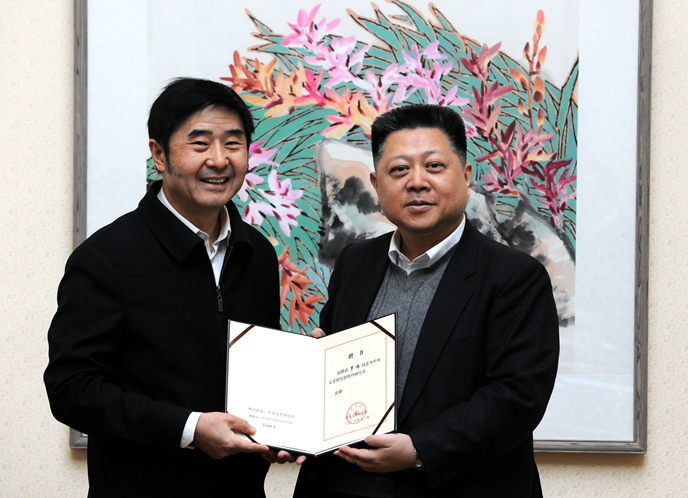 袁行霈向马新林颁发中央文史研究馆特约研究员聘书