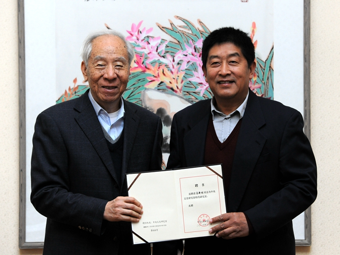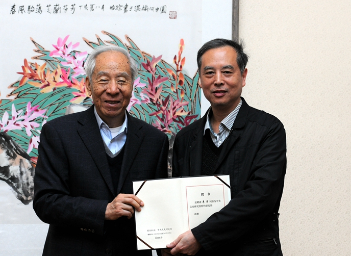 袁行霈向廖奔颁发中央文史研究馆特约研究员聘书