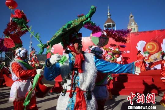 1月13日,中国农历“腊八”这天,崇礼区的颁奖广场上锣鼓喧天,狮龙斗舞。千名民众和游客一起共同开展了“忆腊八送福粥打柳子”腊八节庆活动,并共同观看了有三百年历史传承的“打柳子”大戏。