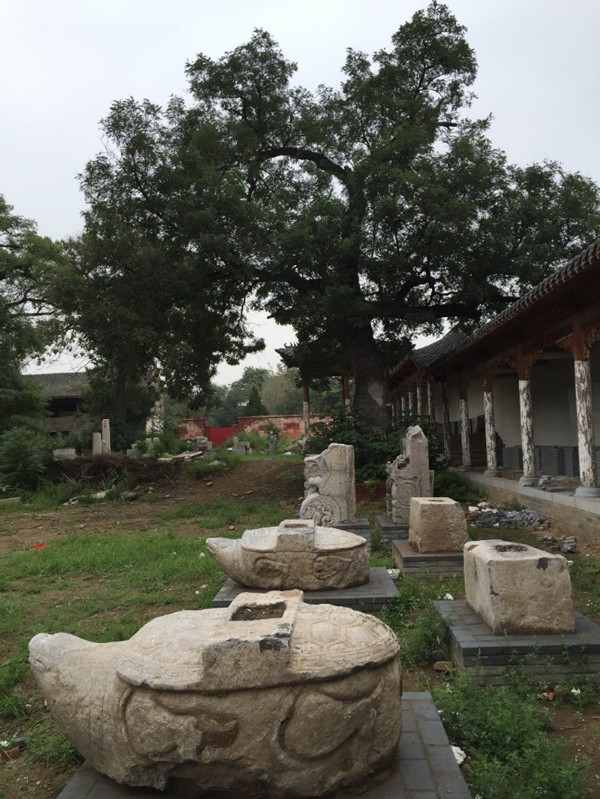 从商王庙前往昼锦堂,其间有碑亭,亭内立有《昼锦堂记》《荣事堂记》《醉白堂记》《重修宋忠献王昼锦堂碑亭记》4通碑铭。其中《荣事堂记》是赵鼎臣撰文,宣和元年(1119)立石,碑文斑剥难辩。苏轼的《醉白堂记》是明代重刻,《碑亭记》则是清代的产物。为了保护古碑,碑亭砌墙上锁,并不开放,亭外的昼锦堂记碑则是当代的复制品。不过从碑亭窗缝仍可张望昼锦堂记碑蔡襄的书法,“端重严劲,绝类鲁公(颜真卿),宋人称为本朝第一,信不虚也”。宋代书法以苏、黄、米、蔡为四大家,蔡或为襄,或为京。蔡襄书法盛名一时,讲求唐人法度,与苏、黄、米书法的文人意态绝不相同。《昼锦堂记》的书写并非一气呵成,而是一纸一字反复琢磨,然后连缀而成,“其书《昼锦堂》每字作一纸,择其不失法度者,裁截布列,连成碑形,当时谓‘百衲本’,故宜胜人也”。碑亭往东是昼锦堂遗址,1967年毁于火灾之后尚未修复,如今仅剩破败的清代建筑奎楼,古槐,以及大量破损石刻碑铭。
