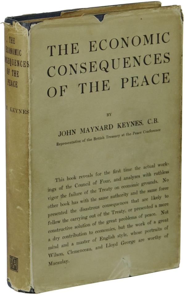 因此如果要追寻大萧条的肇端,1929年不是起点,更有资格的候选日期恐怕还是1919年的巴黎和会。那次会后,凯恩斯辞去了财政部的职务,并写下了《和约的经济后果》(The Economic Consequences of the Peace, 1919)。这本小册子恐怕是凯恩斯流传最广的作品,作为对比,《通论》则是他最令人费解的作品。许多人认为凯恩斯是一位伟大的预言家,因为他在这本小书中率先预见到了十年后的大萧条和二十年后的世界大战。不过这样的观点恐怕是对凯恩斯的过誉,至少凯恩斯也没预料到1929年纽约股市的崩盘——在那次金融震荡中,他的净资产损失四分之三。