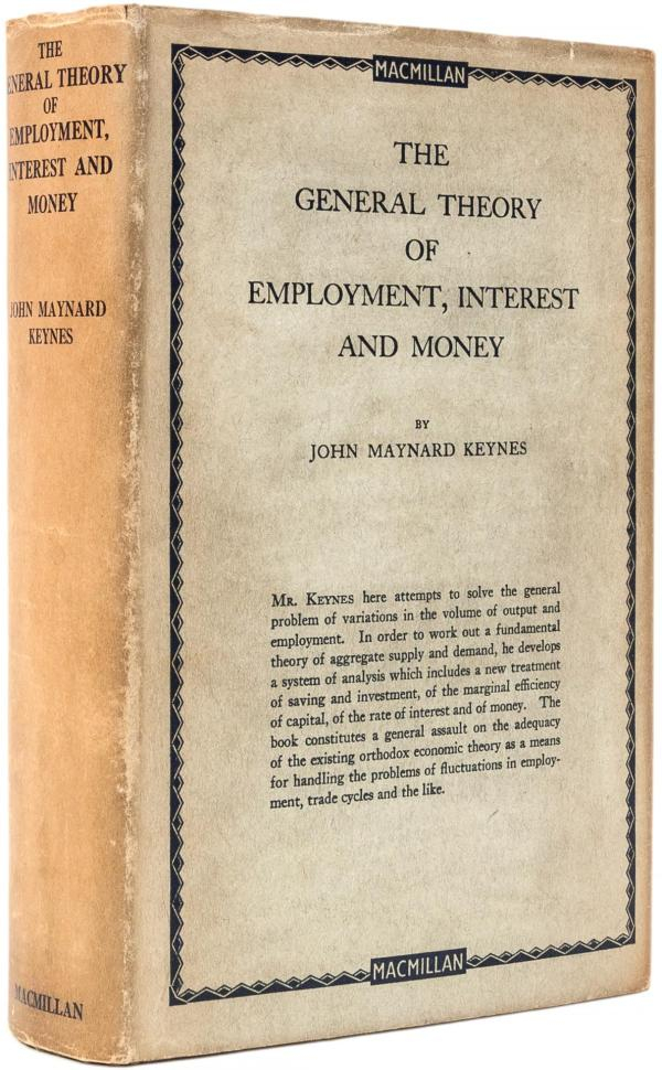 和米塞斯从微观角度入手分析货币的研究理路不同,凯恩斯更多地是从宏观角度入手。特别在《通论》中,他更为关心的是实体经济与货币经济之间的相互影响问题。《通论》(The General Theory of Employment, Interest and Money)一书的书名取自爱因斯坦的名篇《广义相对论下的宇宙观》(“Cosmological Considerations in the General Theory of Relativity”, 1917)。没错,凯恩斯当年对这本书寄予厚望,希望能像爱因斯坦的作品一样在经济学界引发一场大爆炸,为此他还特地降低了该书的售价,希望能有更多人来购买。