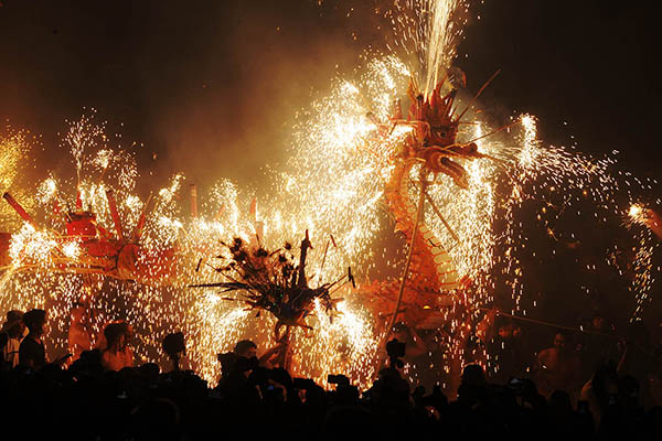 图为:埔寨火龙的表演