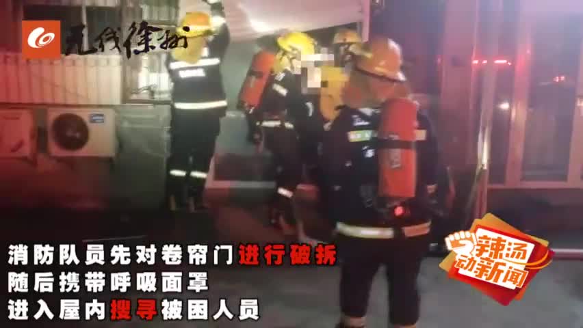 消防员立即破拆卷帘门,
