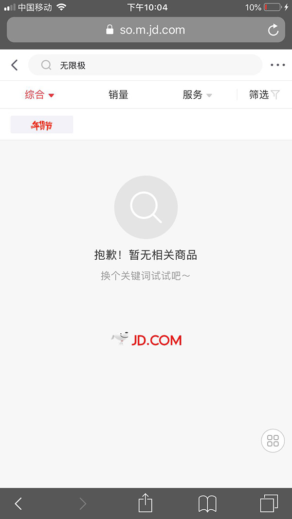 澎湃新闻在京东平台上检索“无限极”这一关键词发现,网页显示为“没有找到‘无限极’的相关商品”。