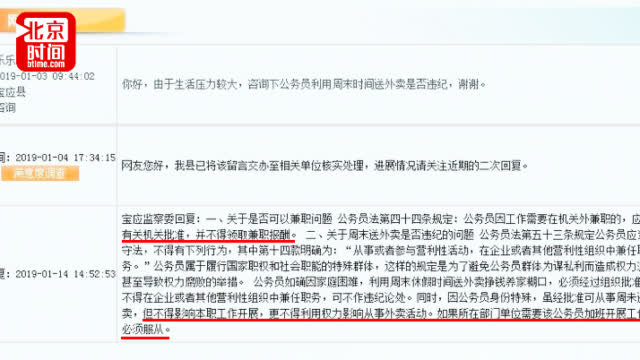 原标题:公务员周末送外卖是否违纪?官方暖心回复获网友点赞